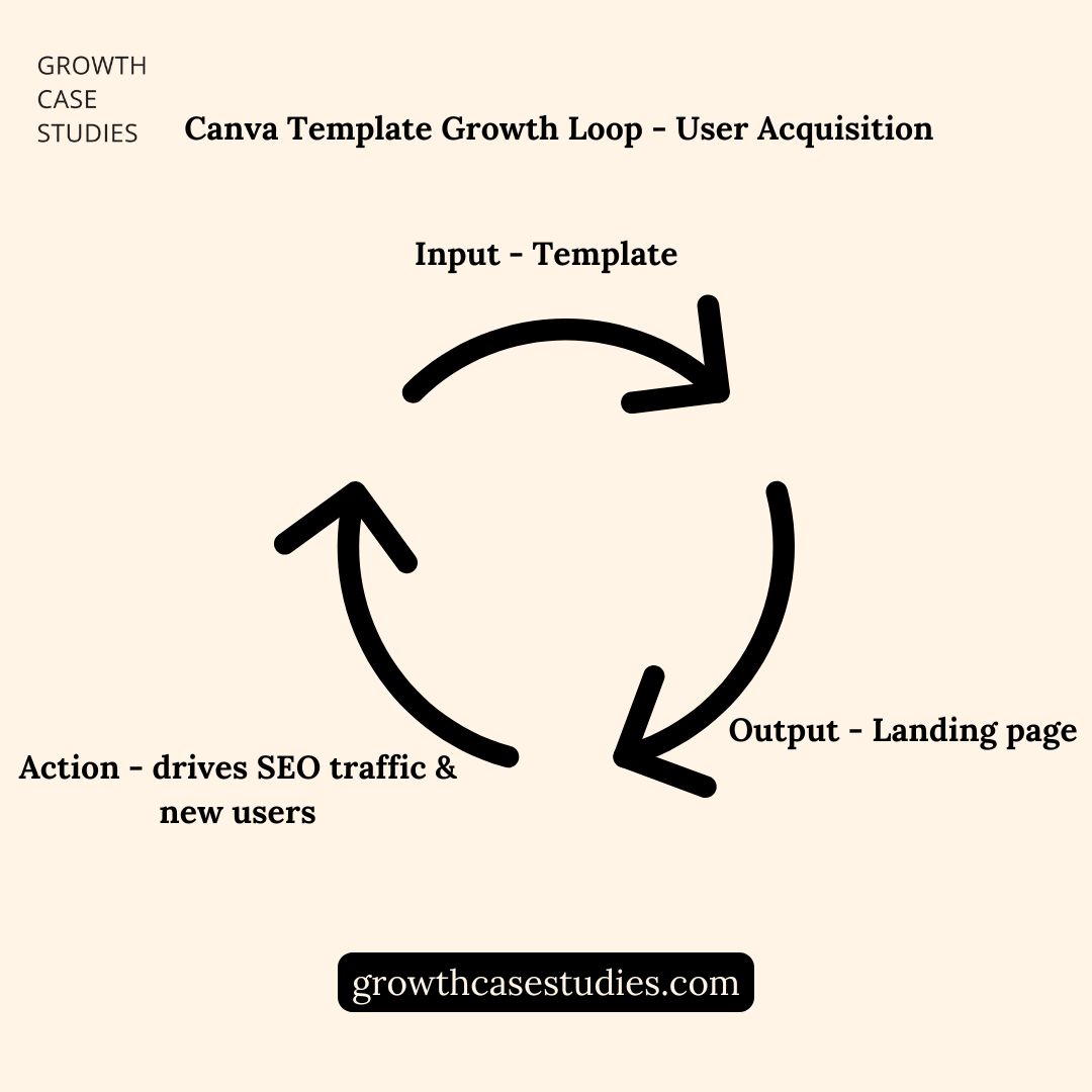 Canva organises and exposes its templates to search engines to solve for user acquisition. This creates a self-sustaining growth loop. Each template or template category is exposed to and indexed by search engines, improving its visibility and driving new users to Canva.