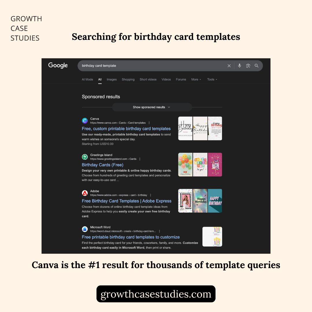 1. Canva Templates solve user acquisition via Search Engine Optimisation.