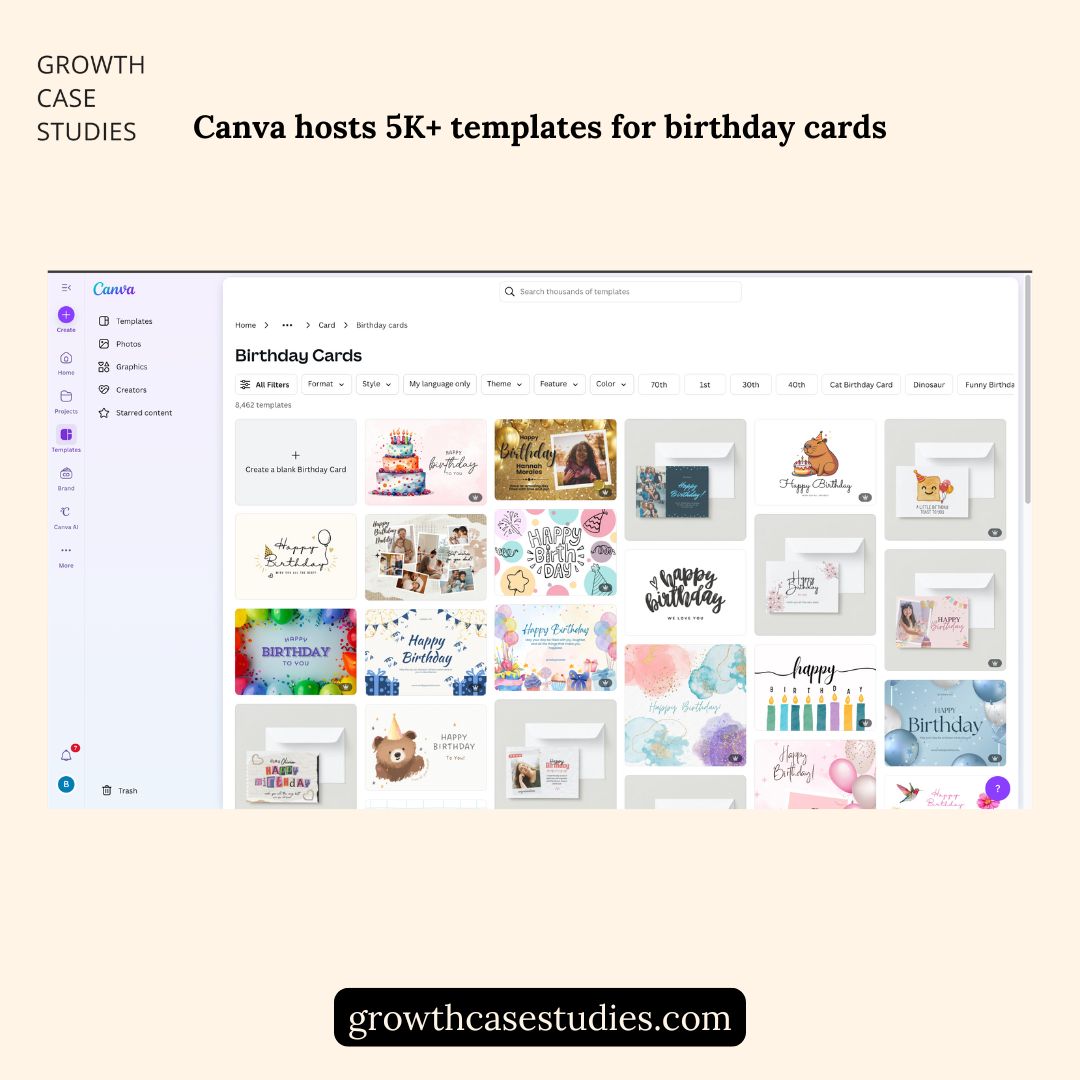 When I search “birthday card template”, Canva is the first